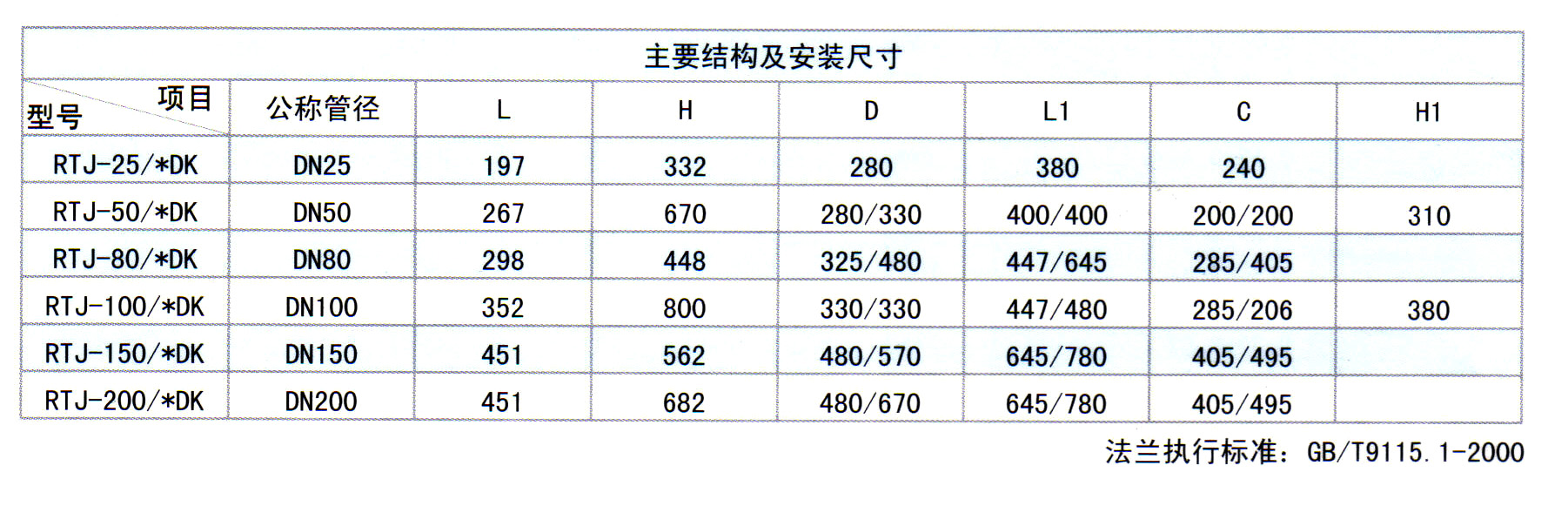 公稱管徑:DN25 D50 DN80 DN100 DN150 DN200